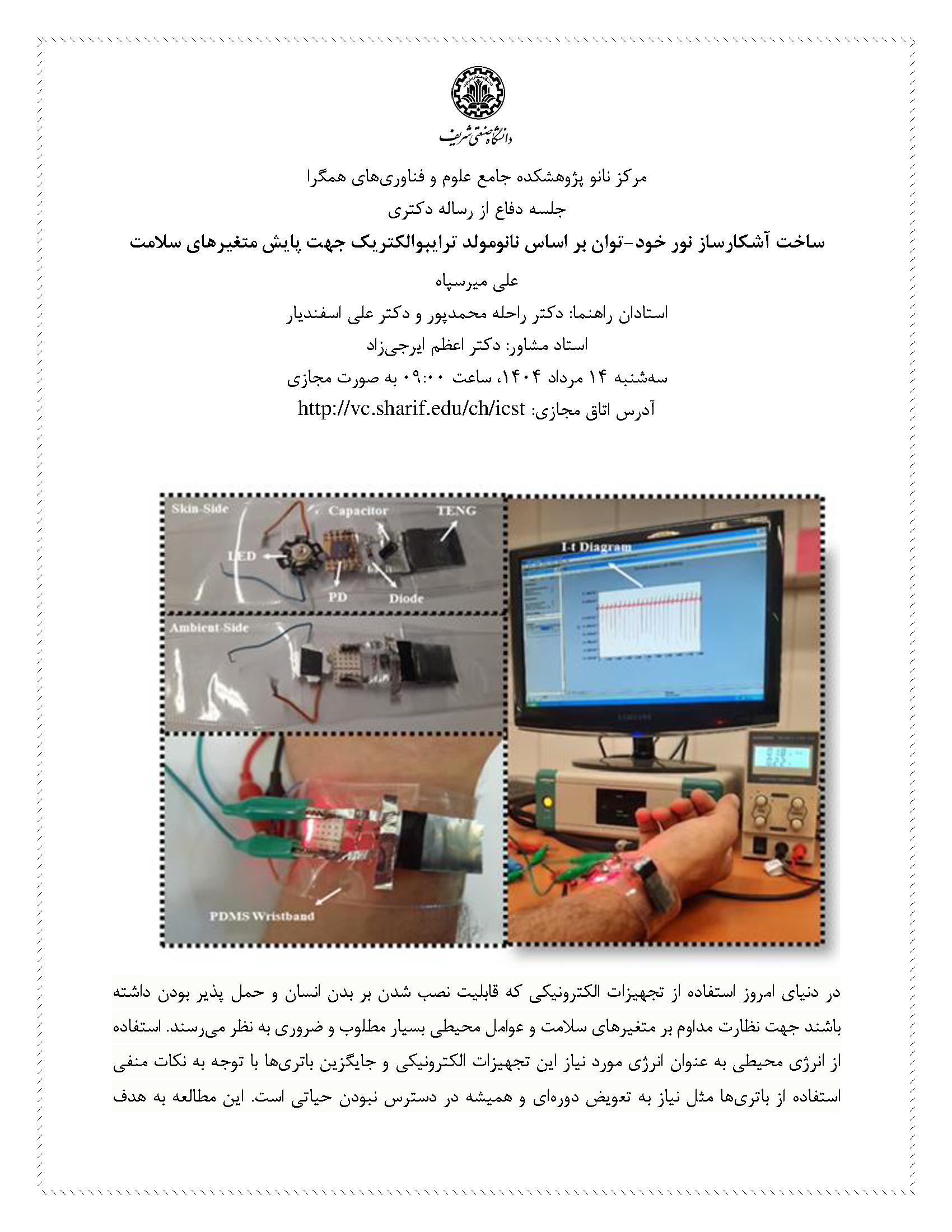 آقای علی میرسپاه دانشجوی پژوهشکده تحت راهنمایی خانم دکتر راحله محمدپور و آقای دکتر اسفندیار در روز سه شنبه 14 مرداد 1404 ساعت 9 صبح در اتاق مجازی http://vc.sharif.edu/ch/icst از رساله خود دفاع خواهند کرد.